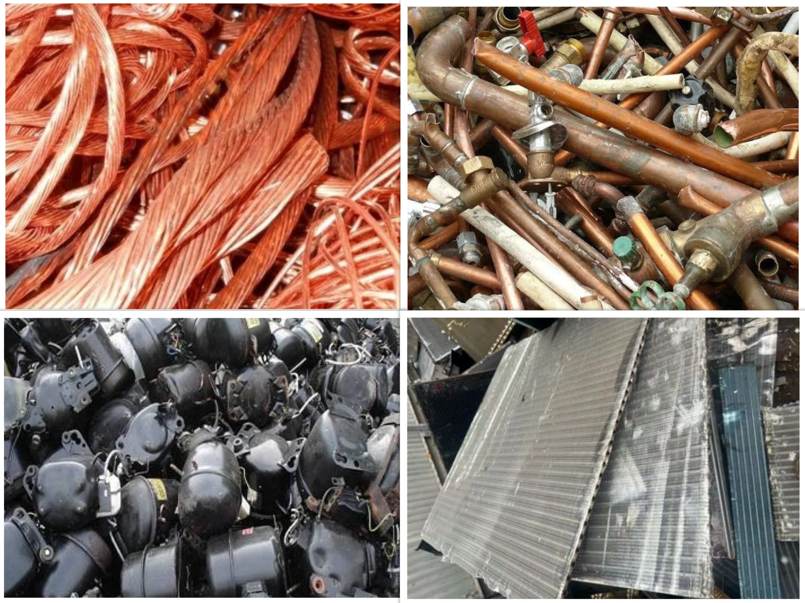 These units from refrigerators and air conditioners contain valuable metals like copper windings, steel casings, and aluminum.