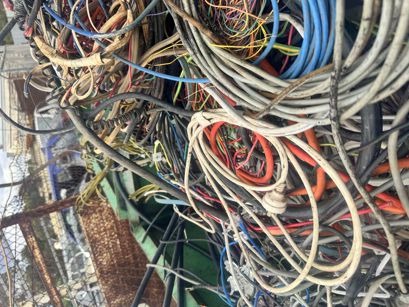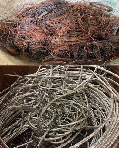 High-tensile aluminium and steel-core cables widely used in power lines, recovered for both aluminium and steel recycling.